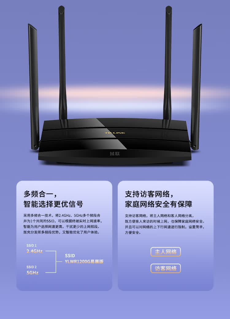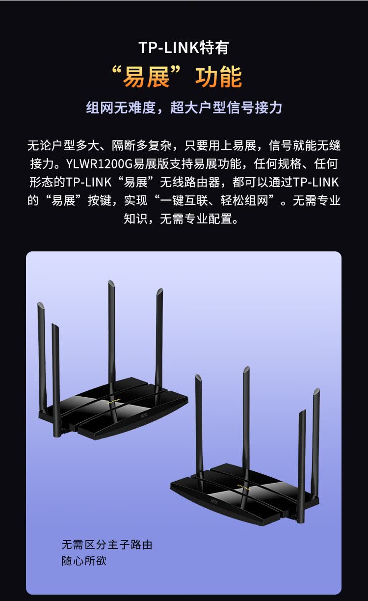 商品名稱:普聯(TP-LINK) 域聯AC1200雙頻千兆無線路由器家用WiFi高速穿墻易展mesh YLWR1200G易展版